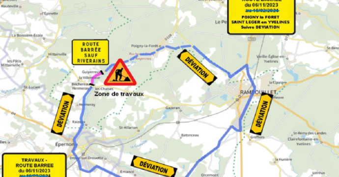 Hermeray: circulation interdite Rue de la Forêt ( RD 107 ) de 8h à 18h jusqu’à mi avril 2024